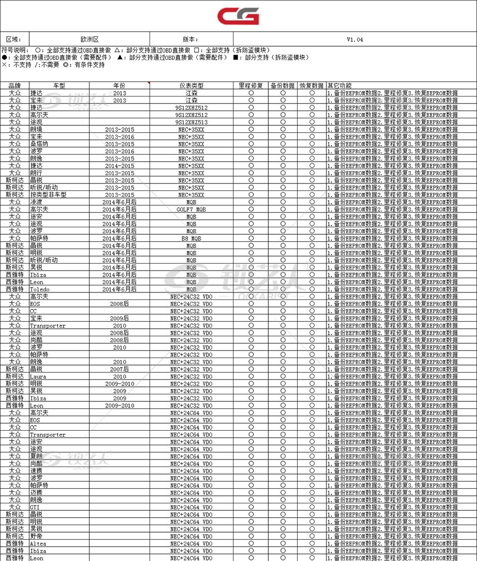 • 多车型覆盖:支持大众、奥迪、菲亚特、路虎、斯柯达、奔驰、保时捷等众多车型。