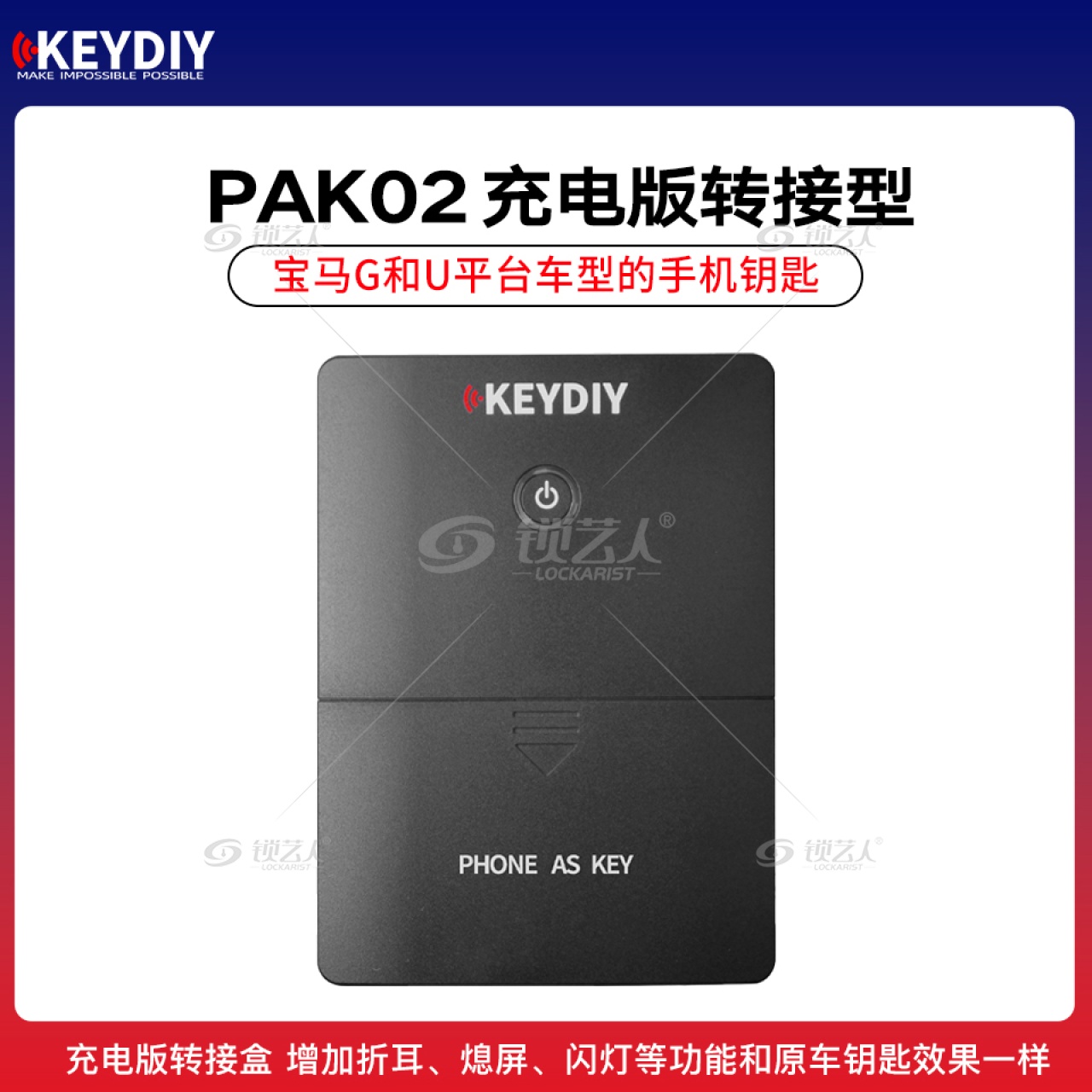 标签 KEYDIY, KD-PAK02, 宝马手机钥匙, 蓝牙钥匙, 充电版钥匙盒, 无感进入, 汽车智能钥匙, G平台, U平台, 后装钥匙盒