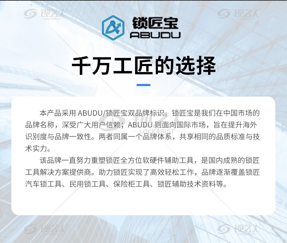 该工具适用于多种专业场景,是专业锁匠提升服务质量和工作效率的必备工具。
