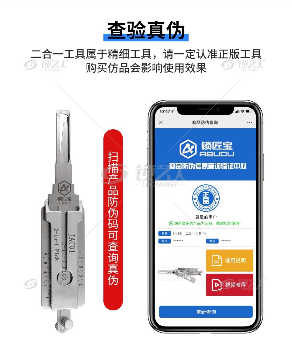 标签 ABUDU, JAC01, 江淮格尔发, 江淮重卡, 汽车锁二合一, 内铣工具, 高硬度合金鋼, 锁匠工具, 维修工具
