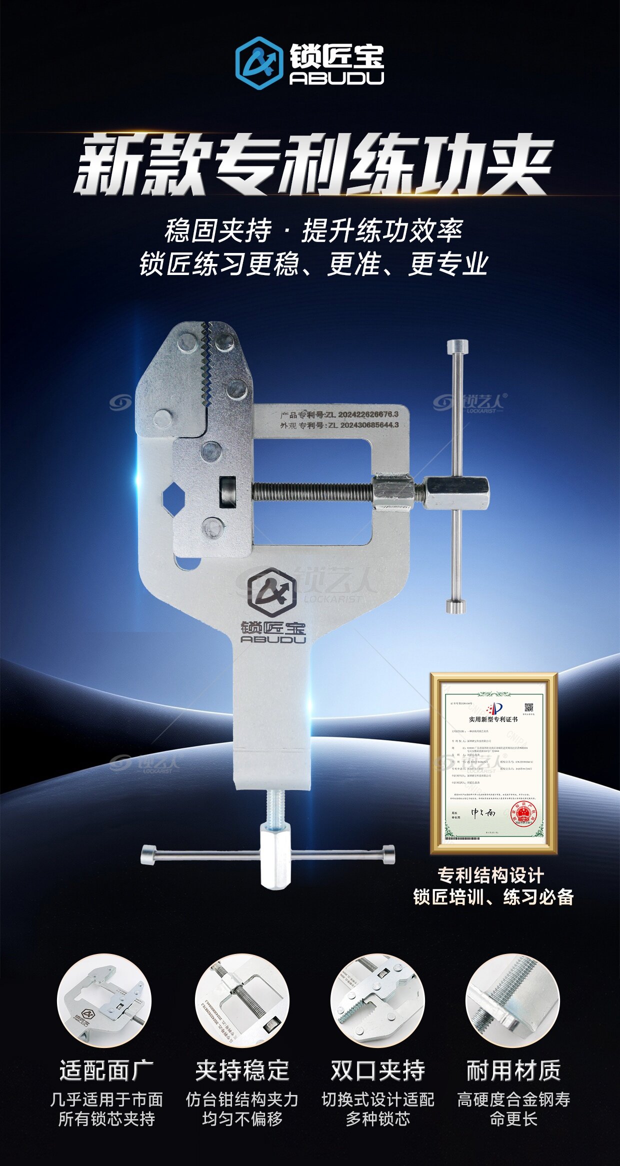 - 双口通用设计:适配多种尺寸锁芯,一夹多用。