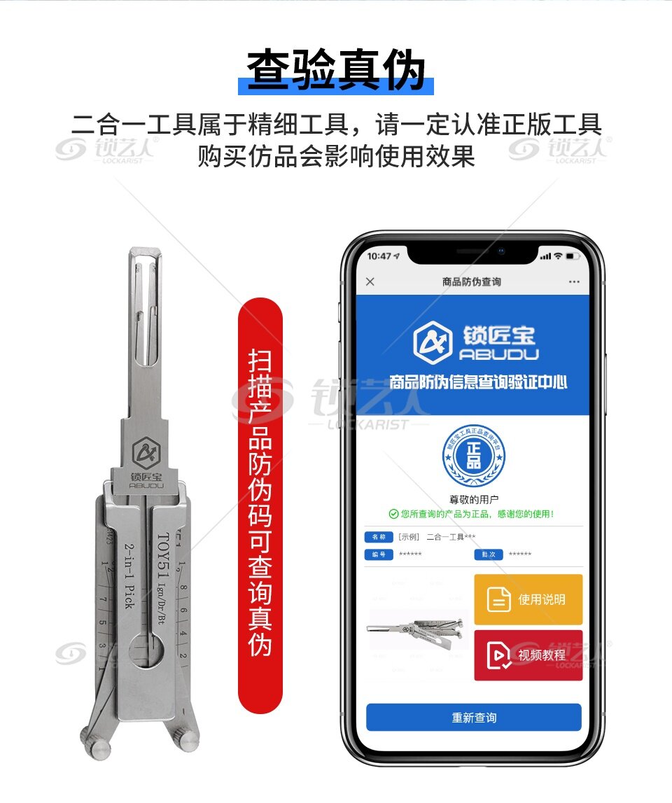 标签 ABUDU, 锁匠宝, TOY51, 陕汽德龙, 红岩杰狮, 猎豹CS10, 汽车锁, 二合一工具, 内铣两轨迹, 锁匠工具, 维修工具