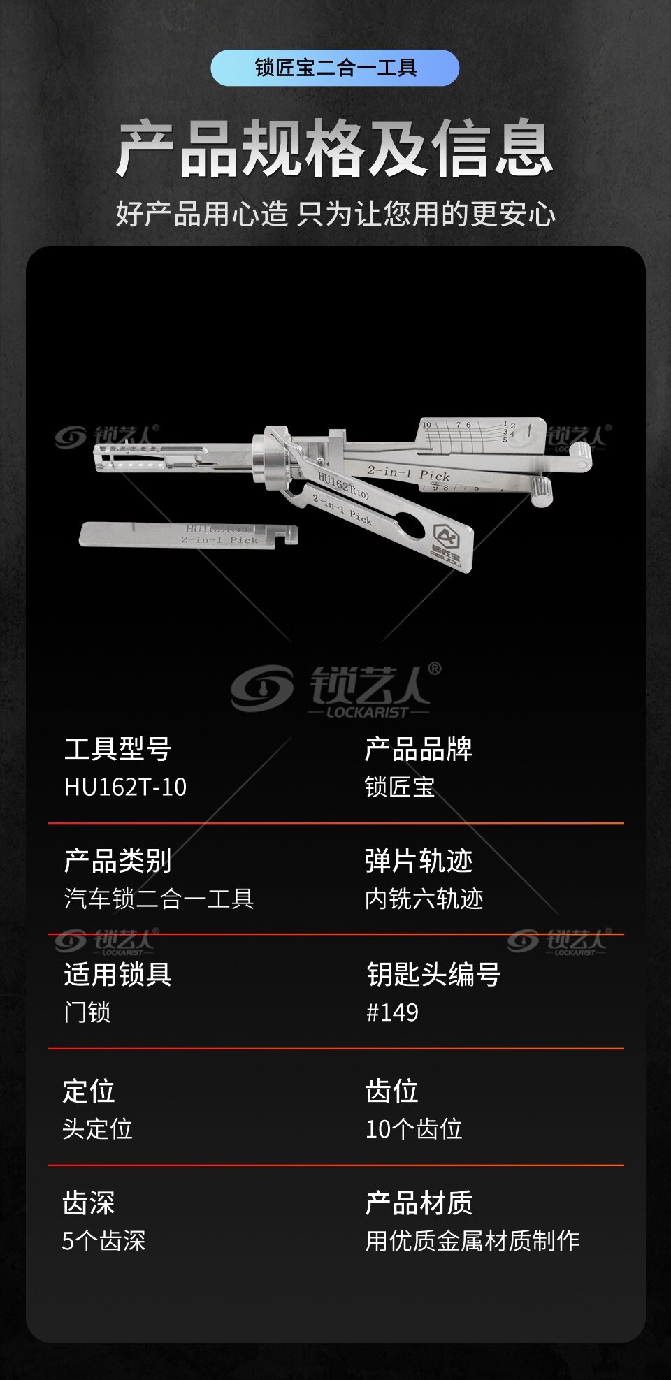 - 该工具适用于技术开启、教学演示及应急服务,是专业锁匠的必备工具。