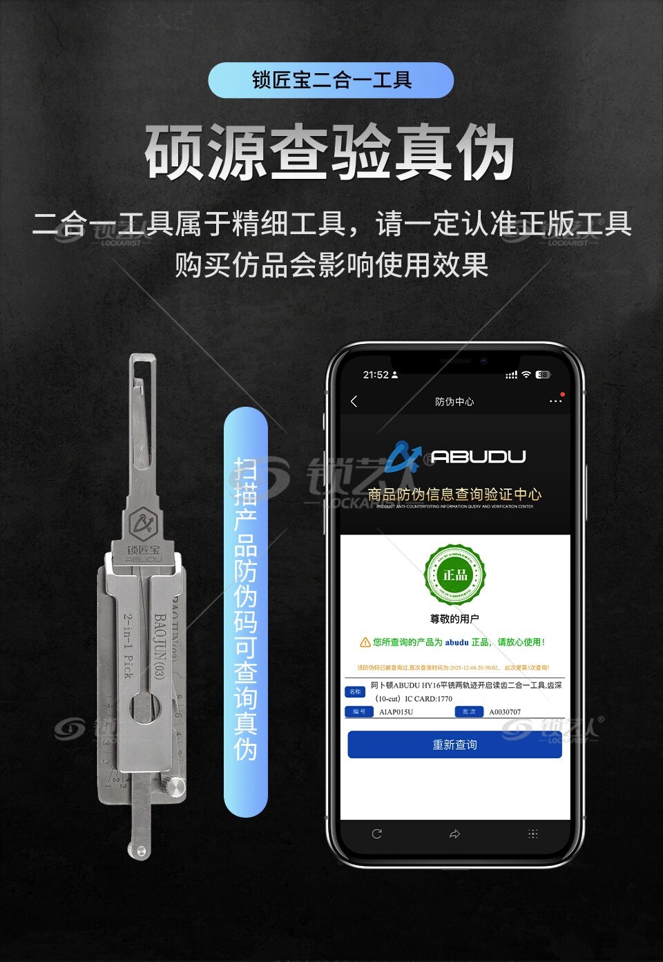 | 适用锁具 | 门锁 点火锁 |