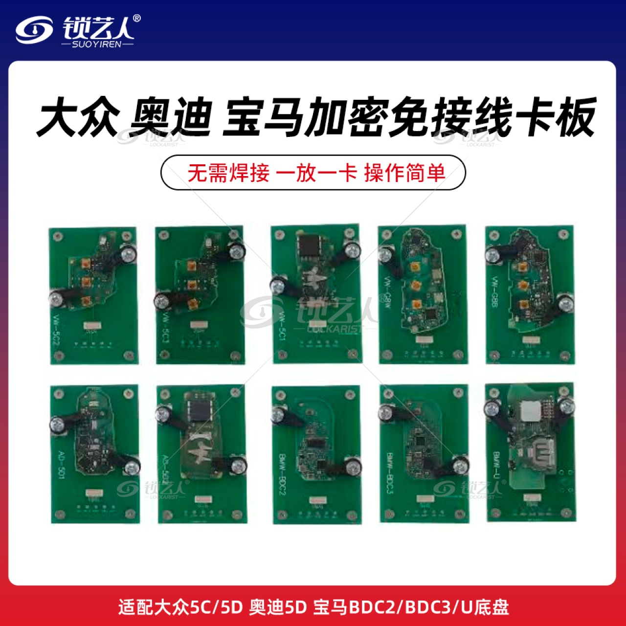 - 兼容车型广:支持大众5C/5D、奥迪5D、宝马BDC2/BDC3/U底盘多款车型。