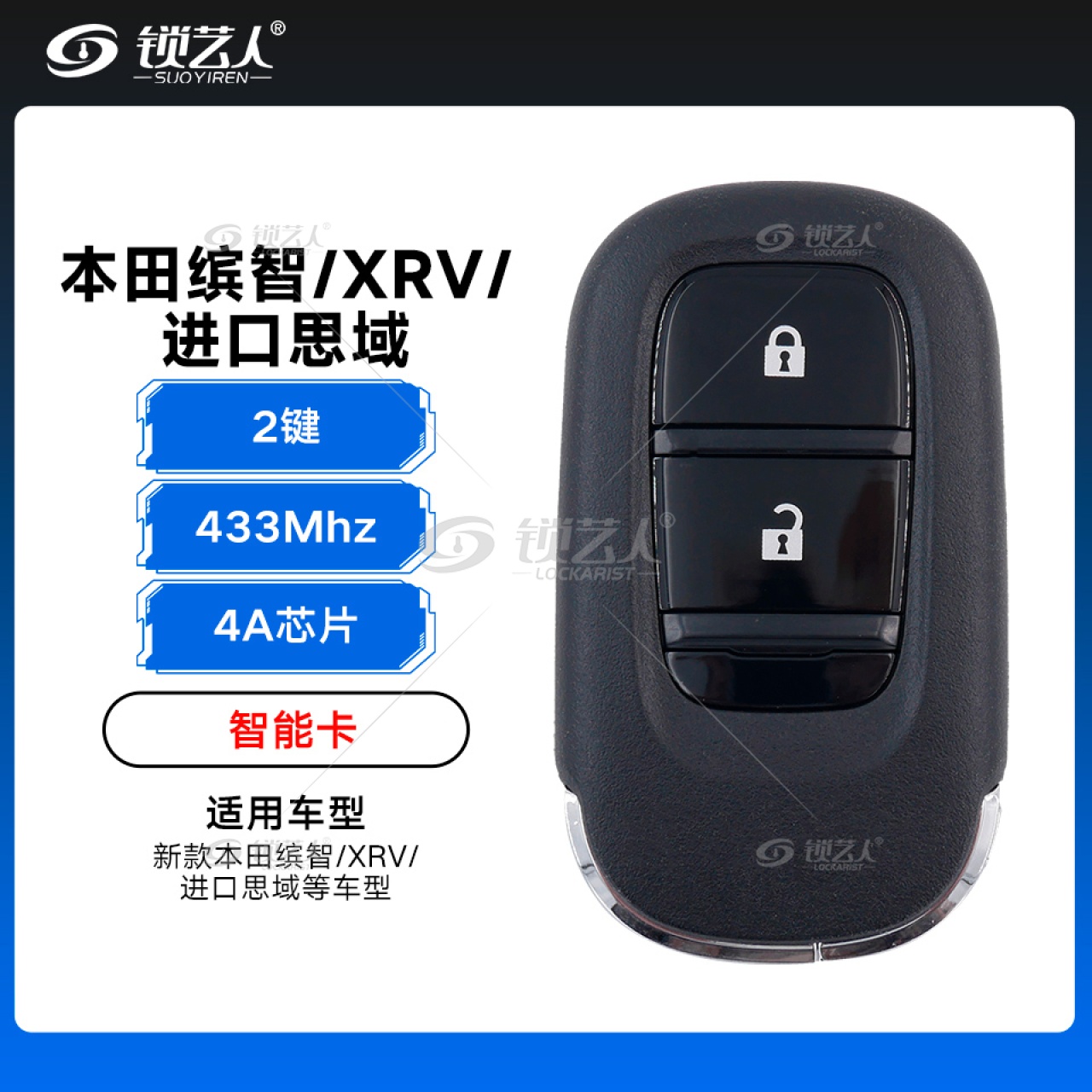 标签 23款新本田, 本田缤智, 本田XRV, 进口思域, 智能卡, 遥控钥匙, 433MHz, 汽车配件, 2键, 4A