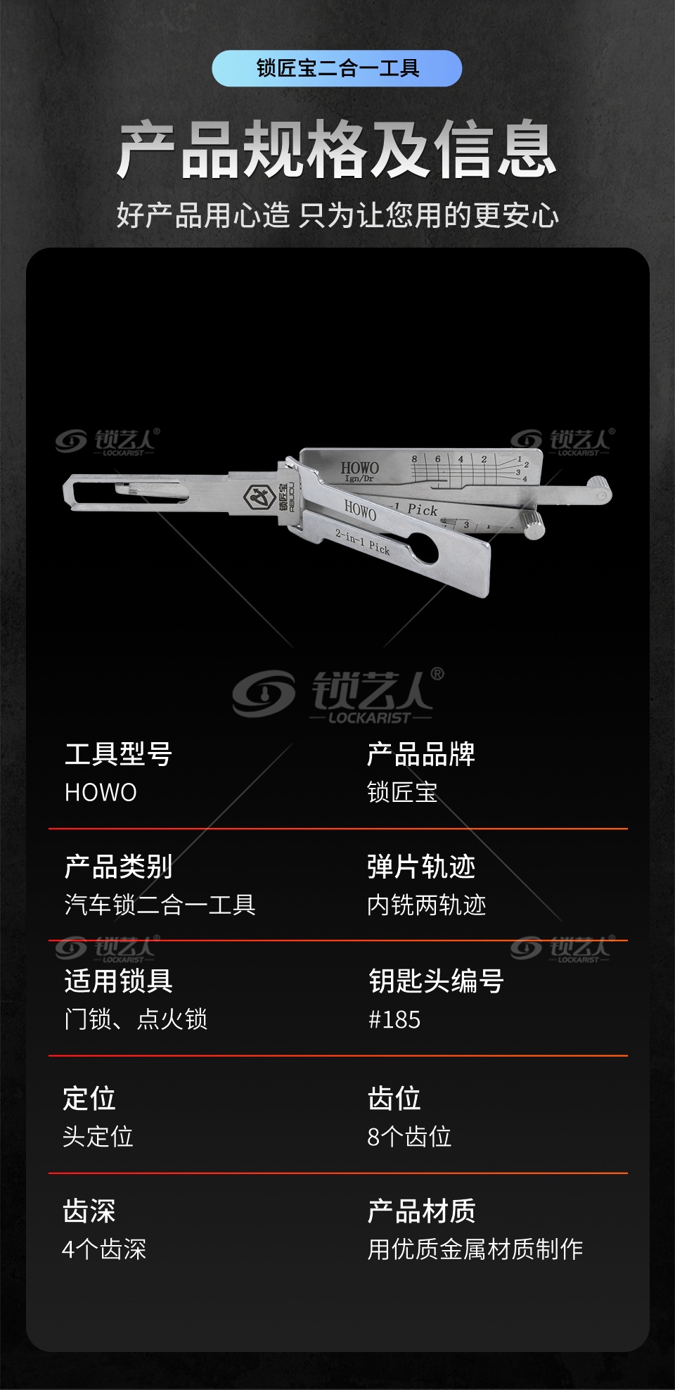 - 适用锁具: 门锁,点火锁