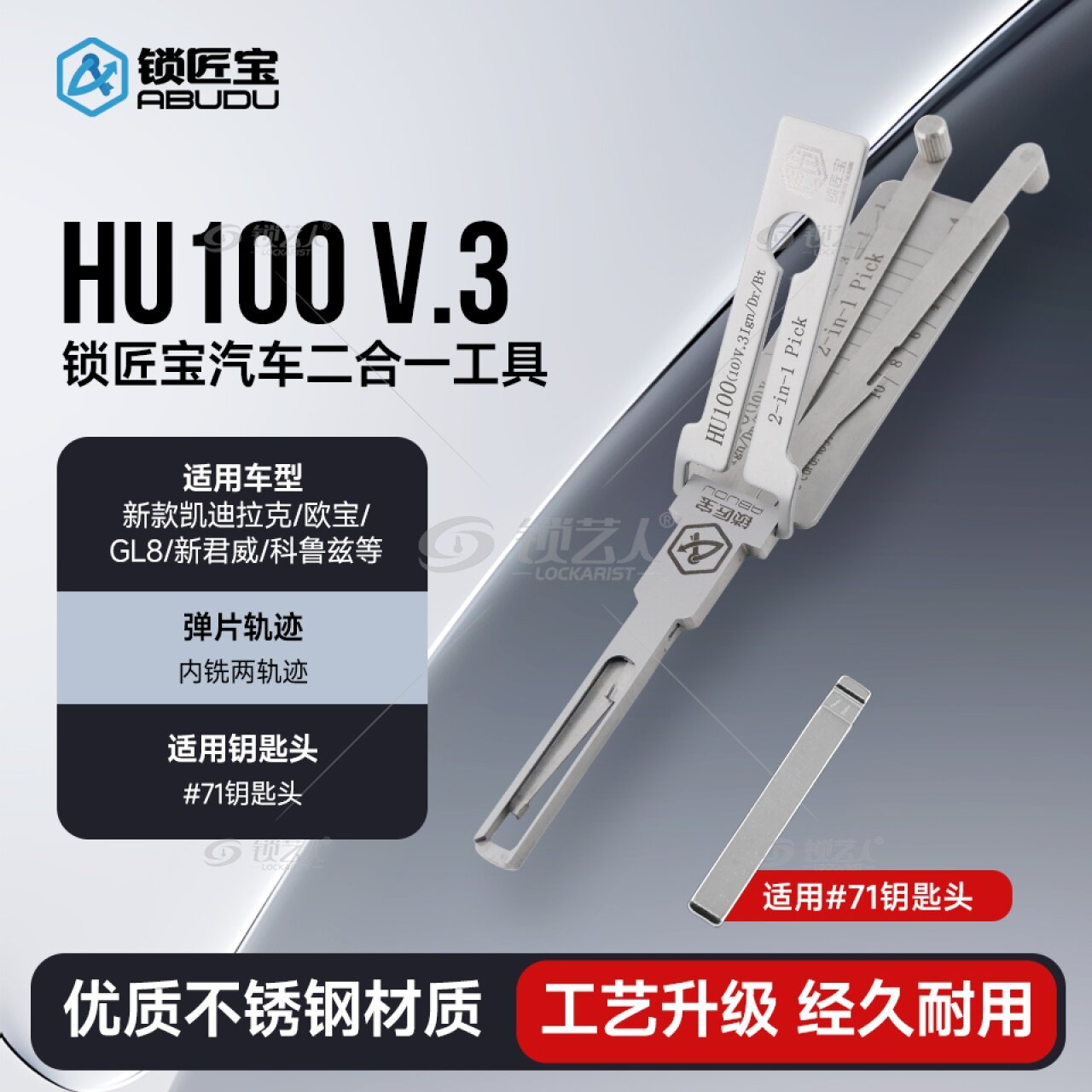 标签 ABUDU 锁匠宝二合一 三合一 HU100(10) 凯迪拉克 欧宝 别克 Gl8 英朗 新君威 科鲁兹 英朗 迈锐宝 大黄蜂 猎豹 爱唯欧 长城H8 H9 开锁工具 汽车开锁 高效安全开锁工具 门锁点火工具 汽车专用