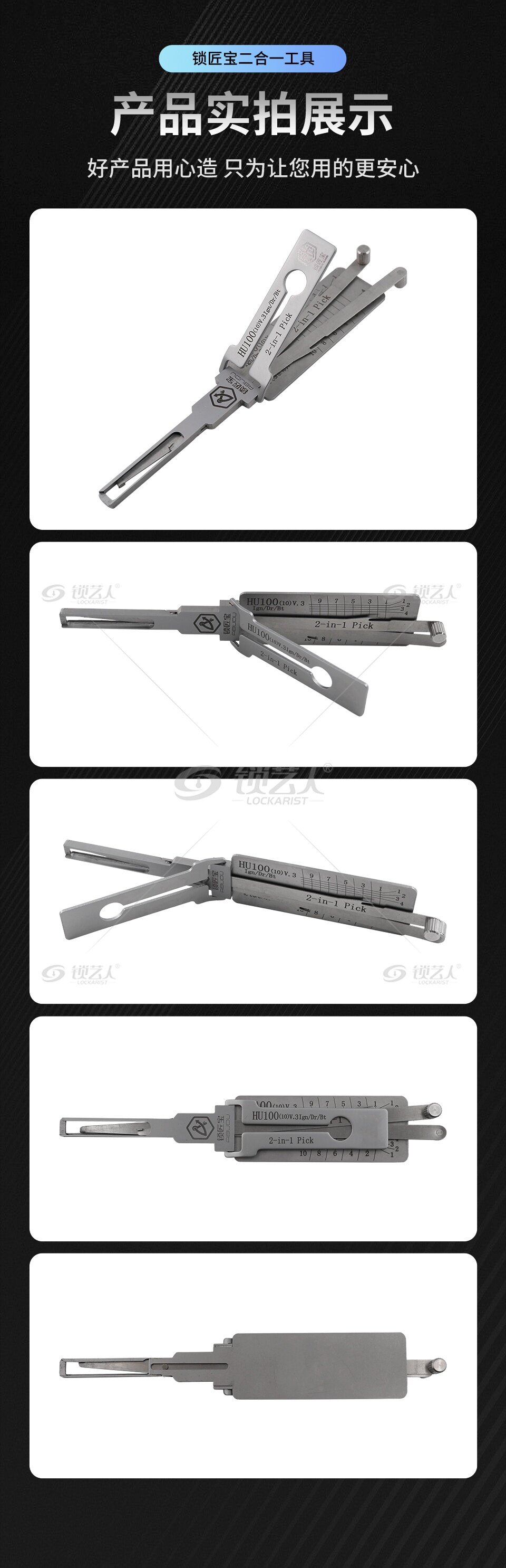 「特别申明」职业锁匠工具下单需要提供锁匠相关证明核实无误方可发货。 锁匠宝别克通用系列HU100(10)二合一工具,专为凯迪拉克、欧宝、别克等品牌车型设计,兼容Gl8、新君威、科鲁兹等多款车型。工具特有的内铣两轨迹技术提供高效精准的开锁体验,加厚手柄设计使得长时间操作不易疲劳。适用于点火锁和门锁,已经过众多经验丰富的锁匠验证,能够显著提高开锁速度,是提升专业效率的理想选择。