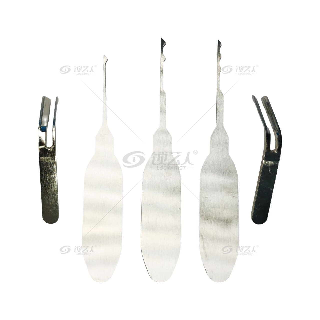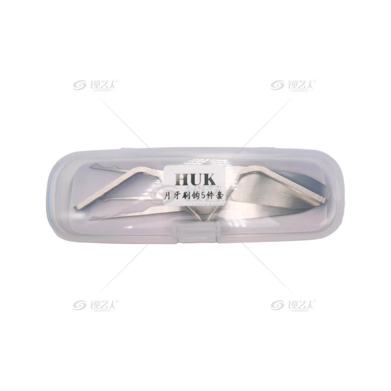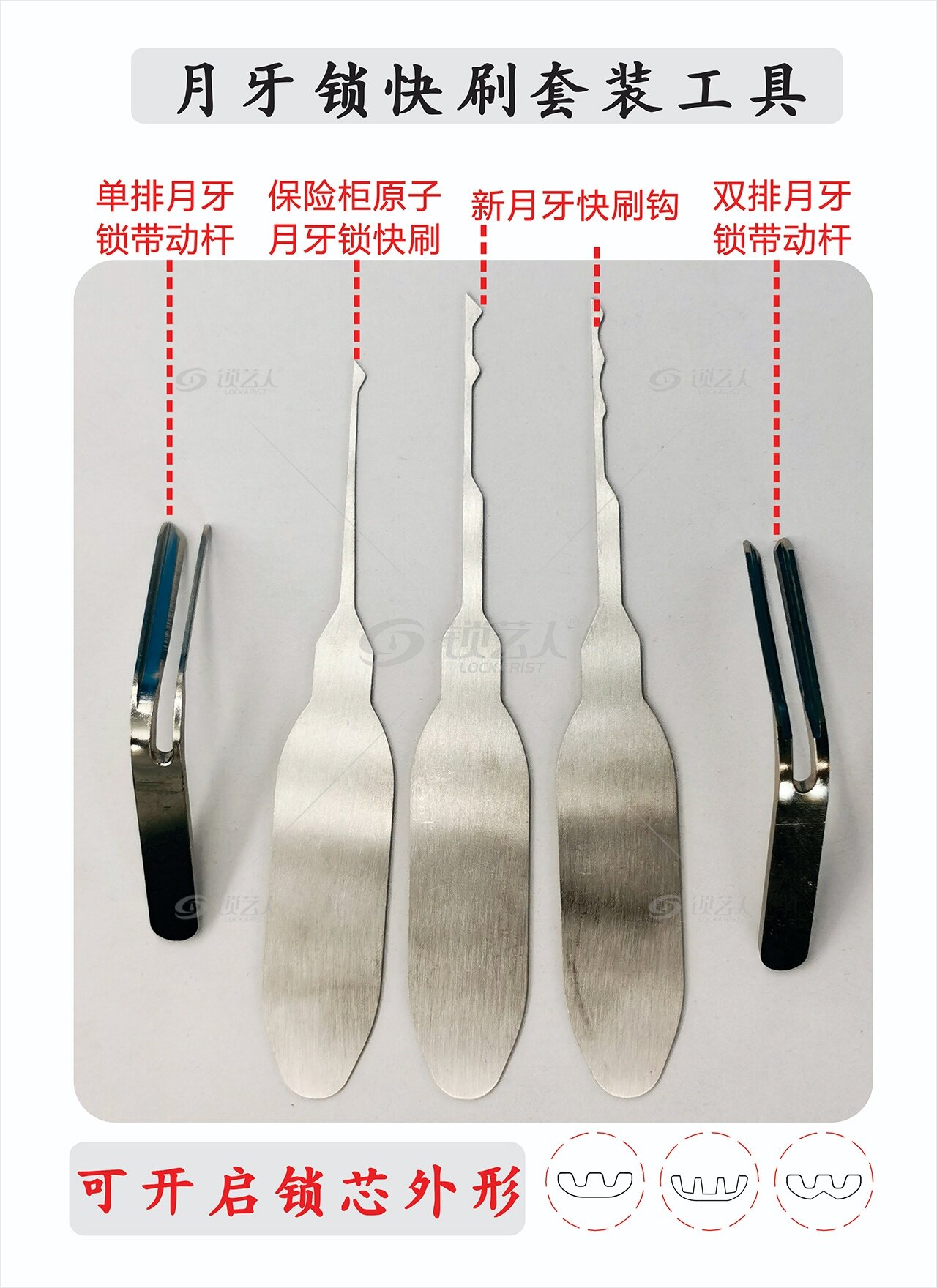 HUK-月牙刷五件套,是锁匠专用月牙锁快刷工具套装。含单/双排月牙锁带动杆、保险柜原子月牙锁快刷、新月牙快刷钩等,适配多种月牙锁芯,助力锁匠高效作业。 HUK - 月牙刷五件套是锁匠开启月牙锁的实用工具套装,包含单排月牙锁带动杆、保险柜原子月牙锁快刷、新月牙快刷钩、双排月牙锁带动杆等工具,可适配多种月牙锁芯外形。工具材质优良,结构设计贴合锁芯,助力锁匠在面对单排、双排月牙锁及保险柜原子月牙锁时,能高效完成开启作业,是锁匠日常作业的得力助手。