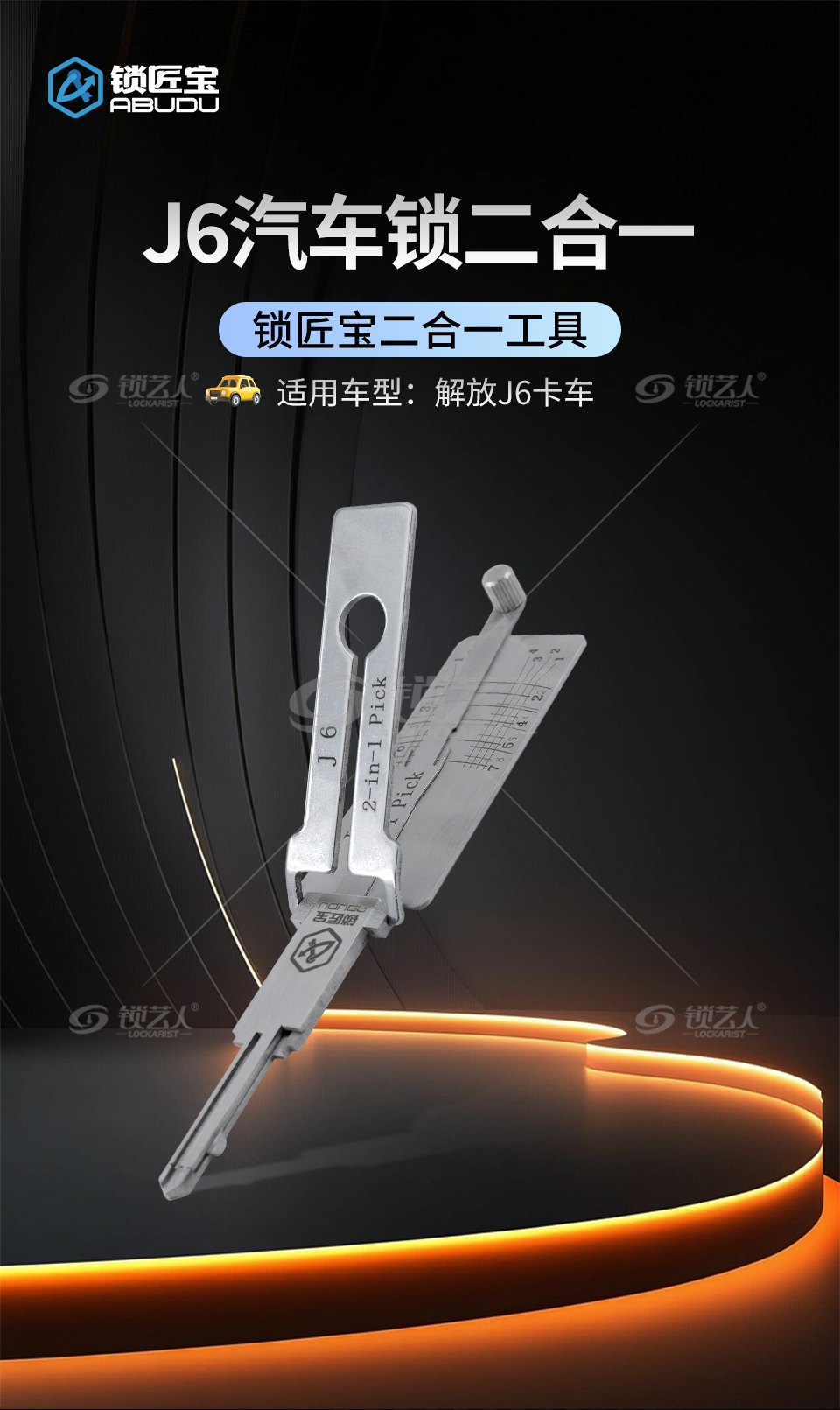 标签 ABUDU, 锁匠宝, J6, 解放J6, 汽车锁, 平铣两轨迹, 车门锁, 锁匠工具, 维修工具
