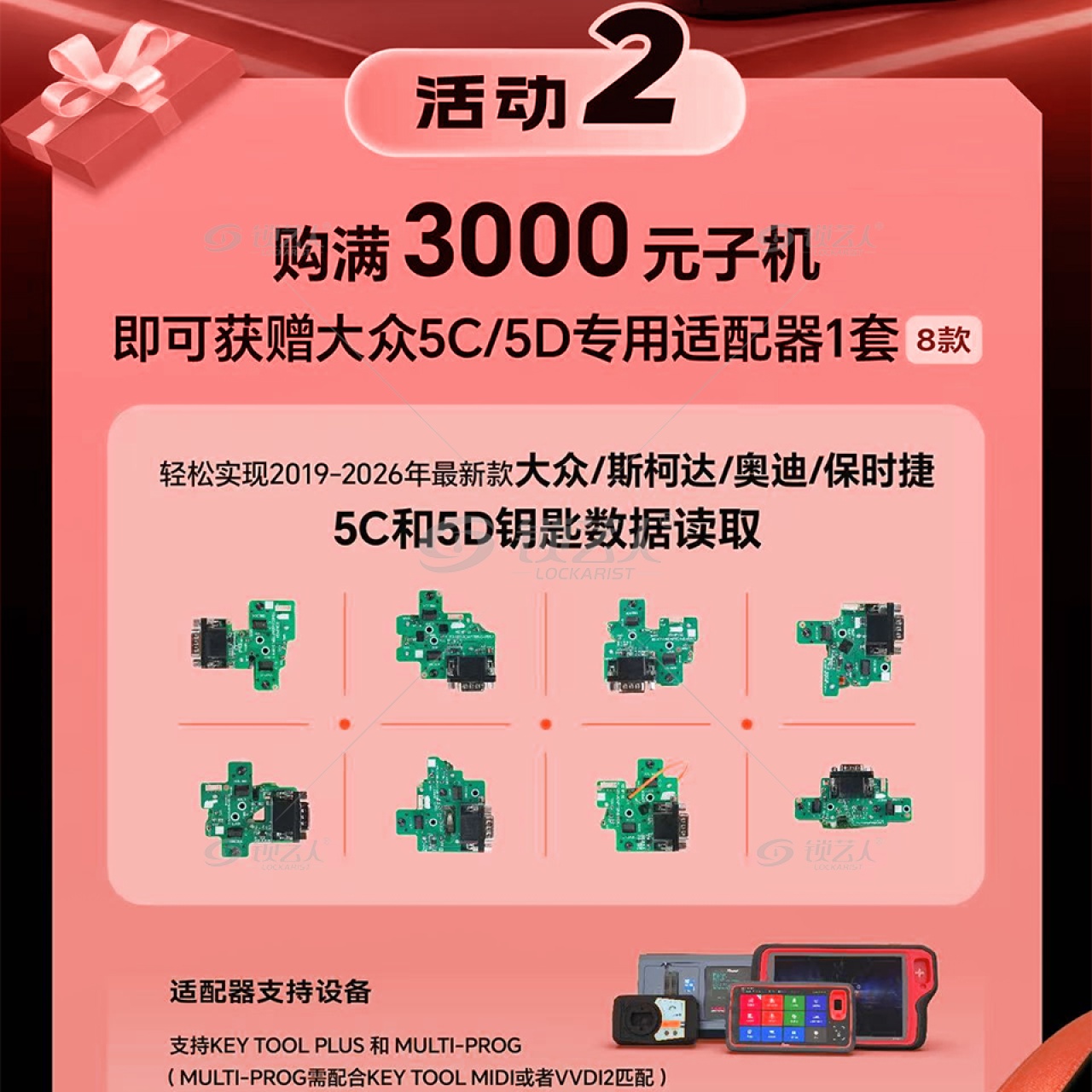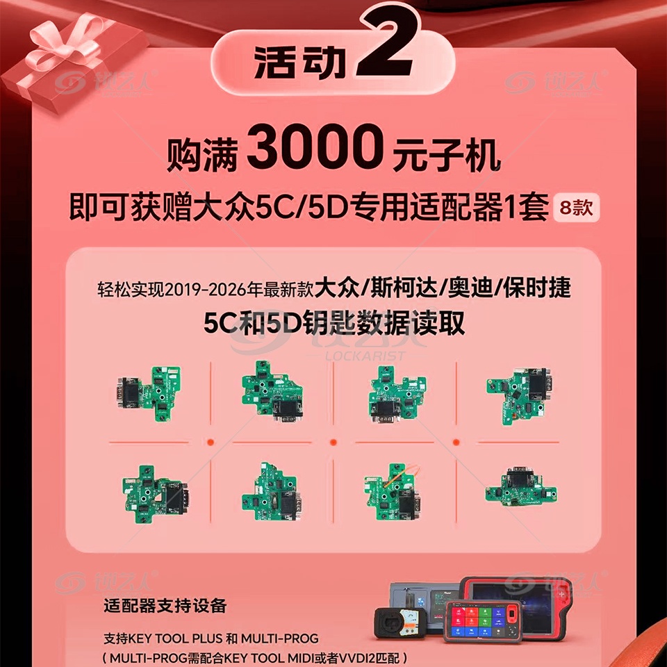 标签 Xhorse, KeyToolMaxPro, VVDI, 开年钜惠, 汽车钥匙编程, 钥匙克隆, 有线子机, 促销, 赠品, 适配器, MQB