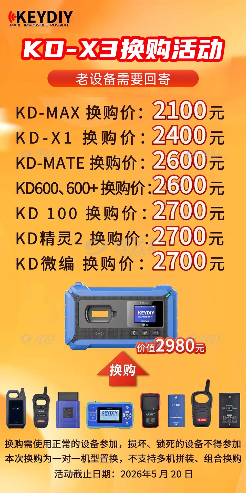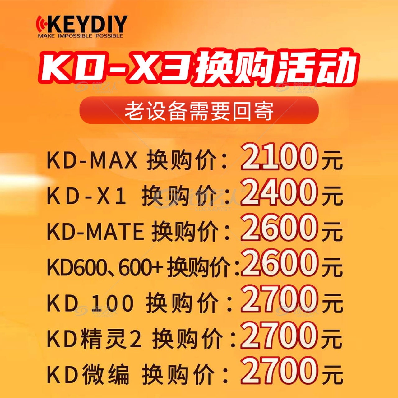 指定旧设备用户可参加本次换购活动,旧设备回寄审核通过后,即可按对应机型享受换购价升级至 KEYDIY KD-X3。