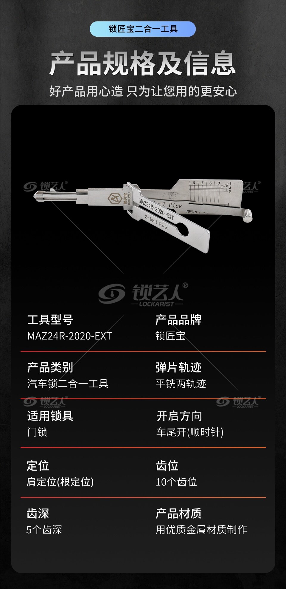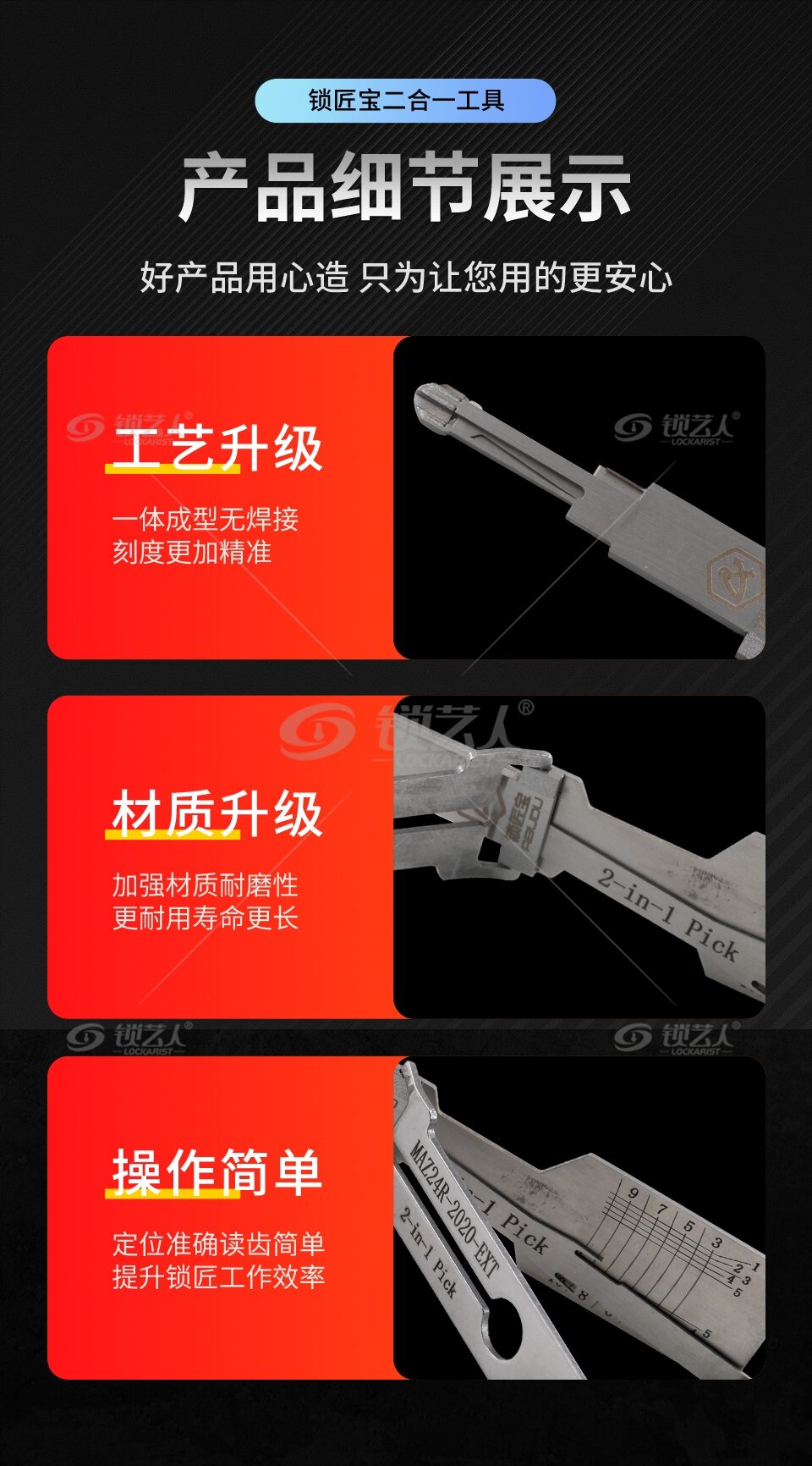 - 该工具适用于技术开启、教学演示及应急服务,是专业锁匠的必备工具。