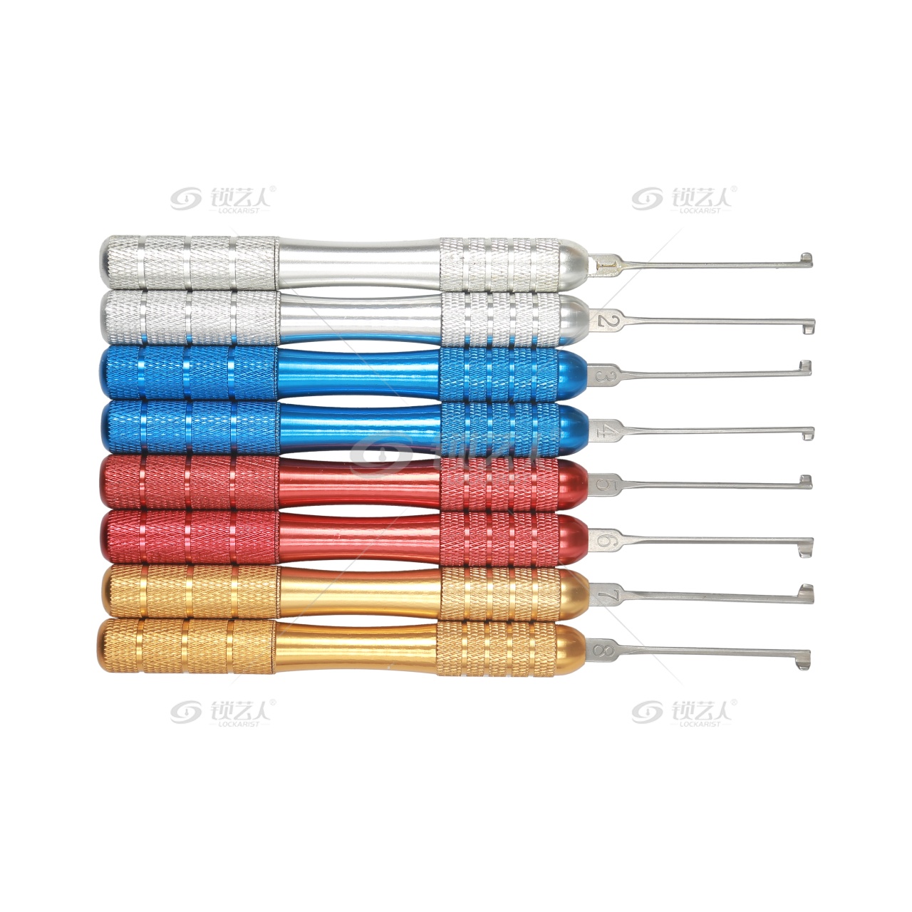 年年有新货,HUK胡氏精诚年底前推出8件彩柄卡巴钩,在综合当前锁匠工具行业同类产品优势的基础上,小有改进。