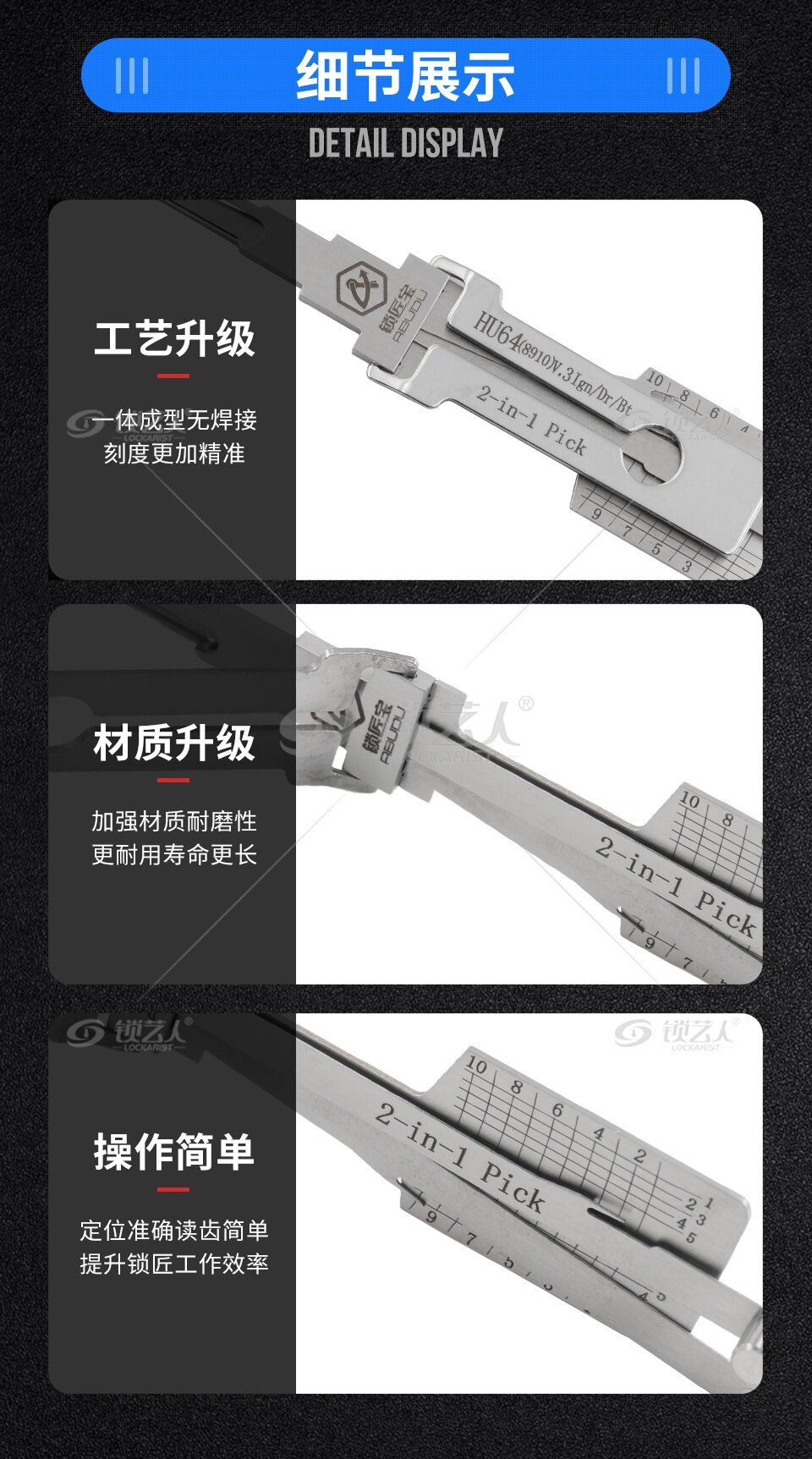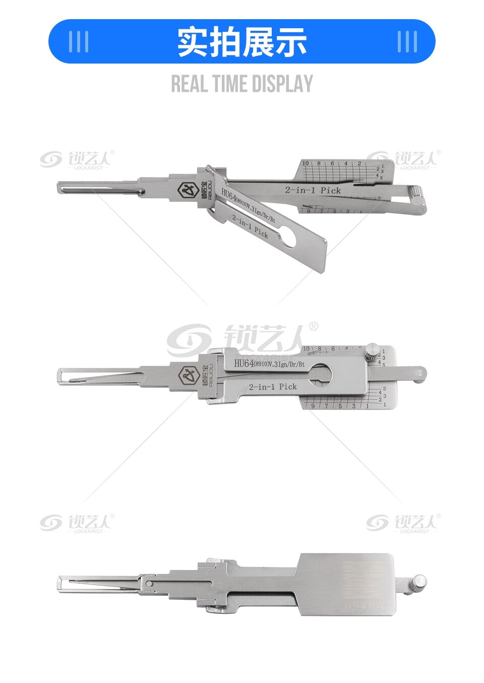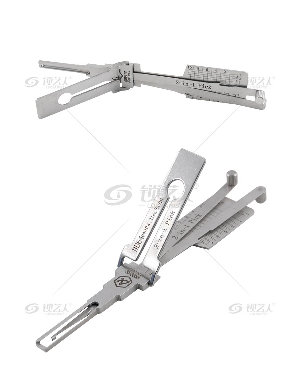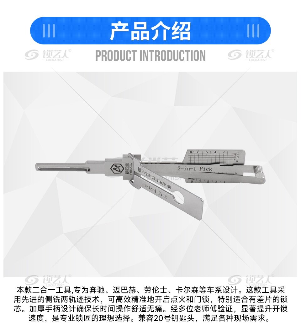 「特别申明」职业锁匠工具下单需要提供锁匠相关证明核实无误方可发货。 锁匠宝奔驰HU64二合一工具,专为奔驰、迈巴赫、劳伦士、卡尔森等车系设计。这款工具采用先进的侧铣两轨迹技术,可高效精准地开启点火和门锁,特别适合有差片的锁芯。加厚手柄设计确保长时间操作舒适无痛。经多位老师傅验证,显著提升开锁速度,是专业锁匠的理想选择。兼容20号钥匙头,满足各种现场需求。