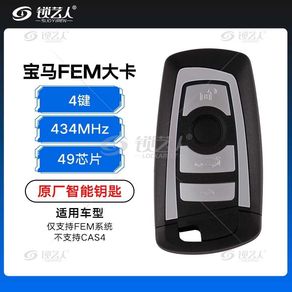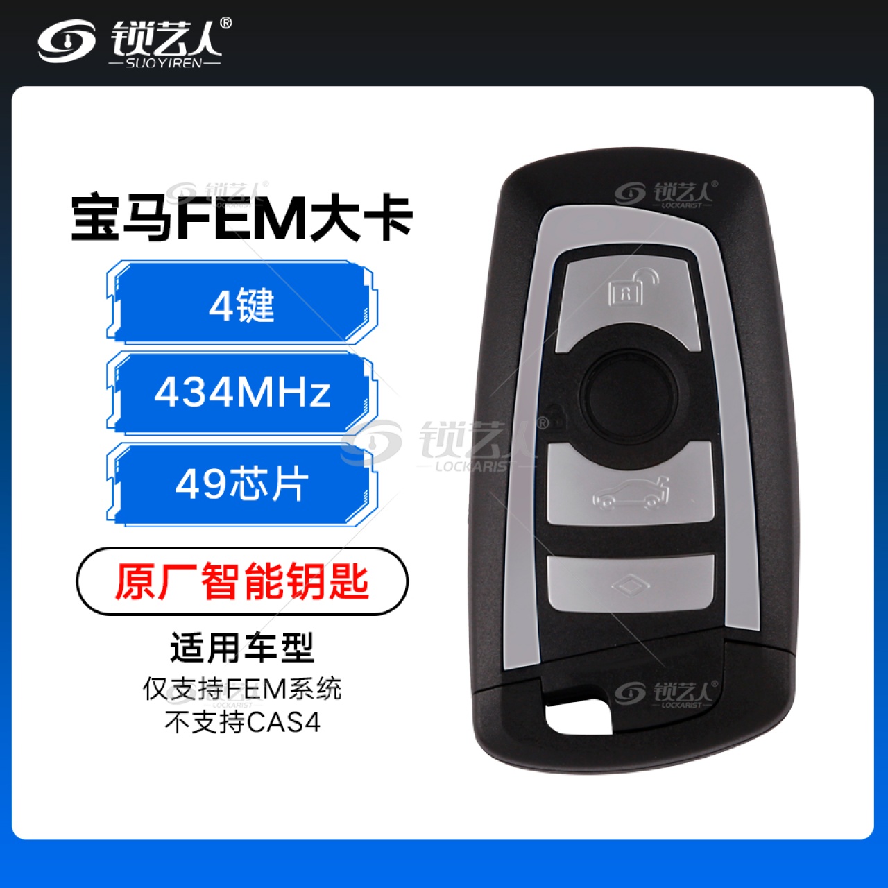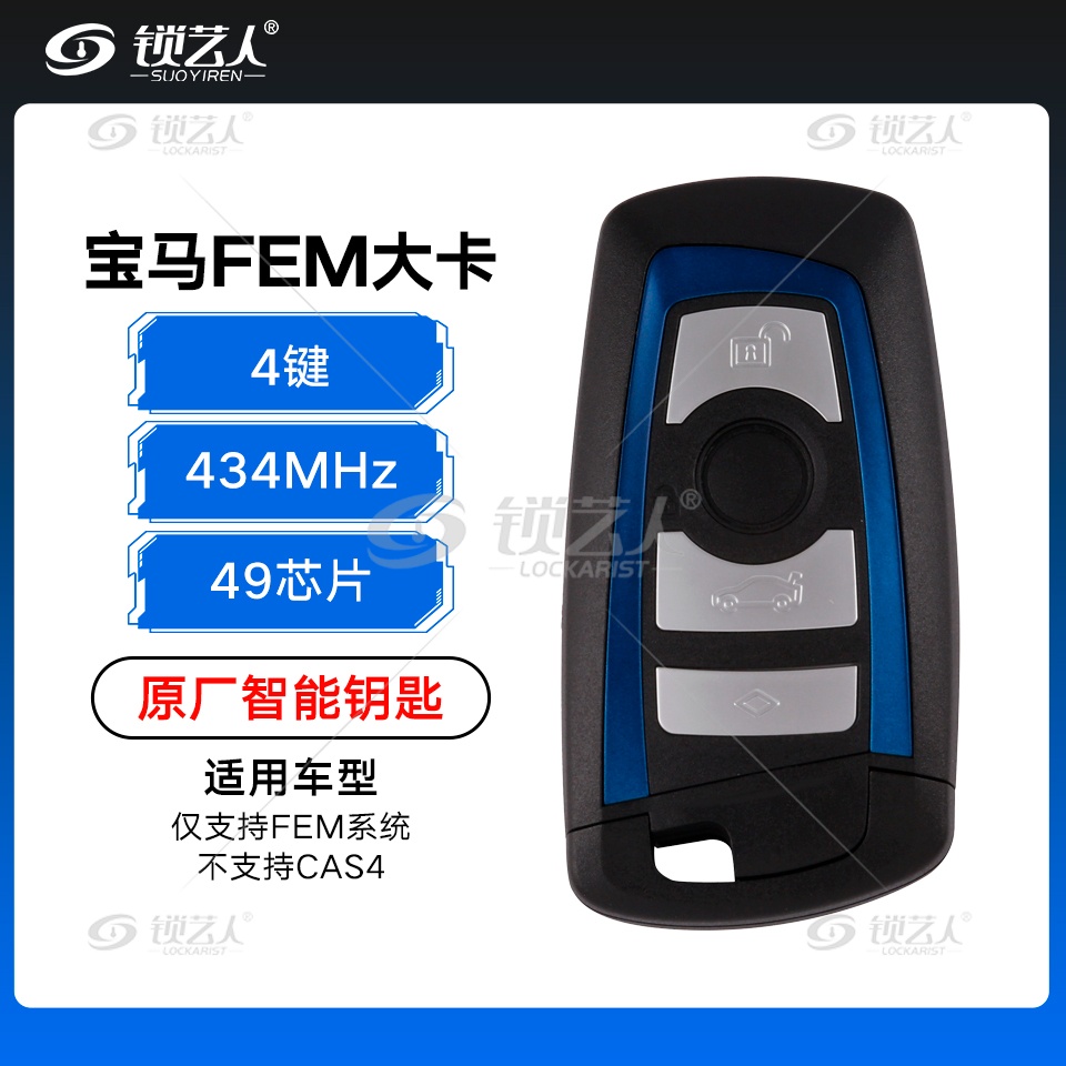 原厂宝马FEM智能钥匙,4键,434频率49芯片,适用于F底盘FEM系统的车型,有银色蓝色可选,针对有原厂钥匙需求车主,可以选择同款颜色的购买后匹配。
