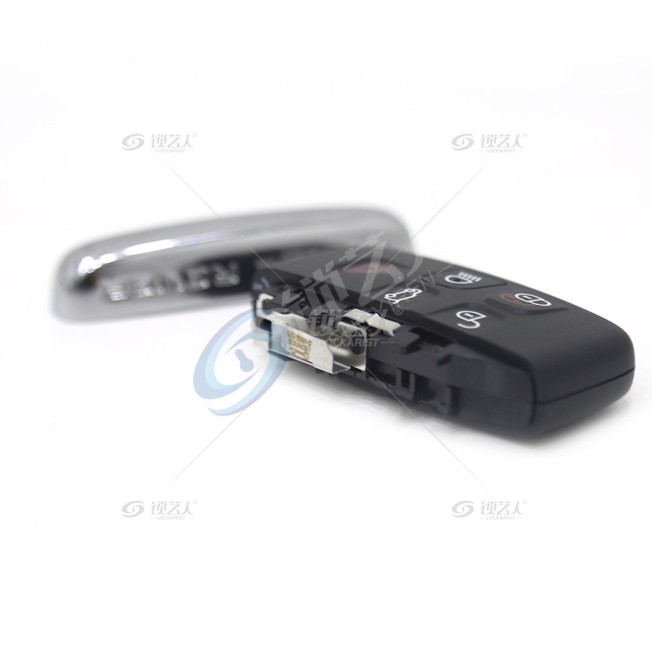 注意:可修改ID。该款钥匙外壳侧边金属条不带路虎、捷豹的英文标识,外壳背面也无标,不带小钥匙。