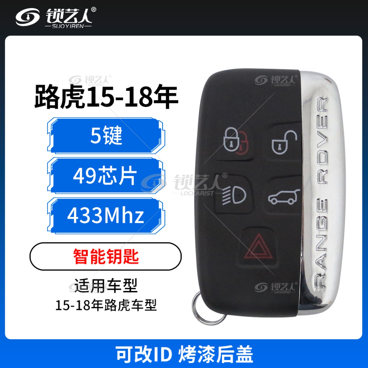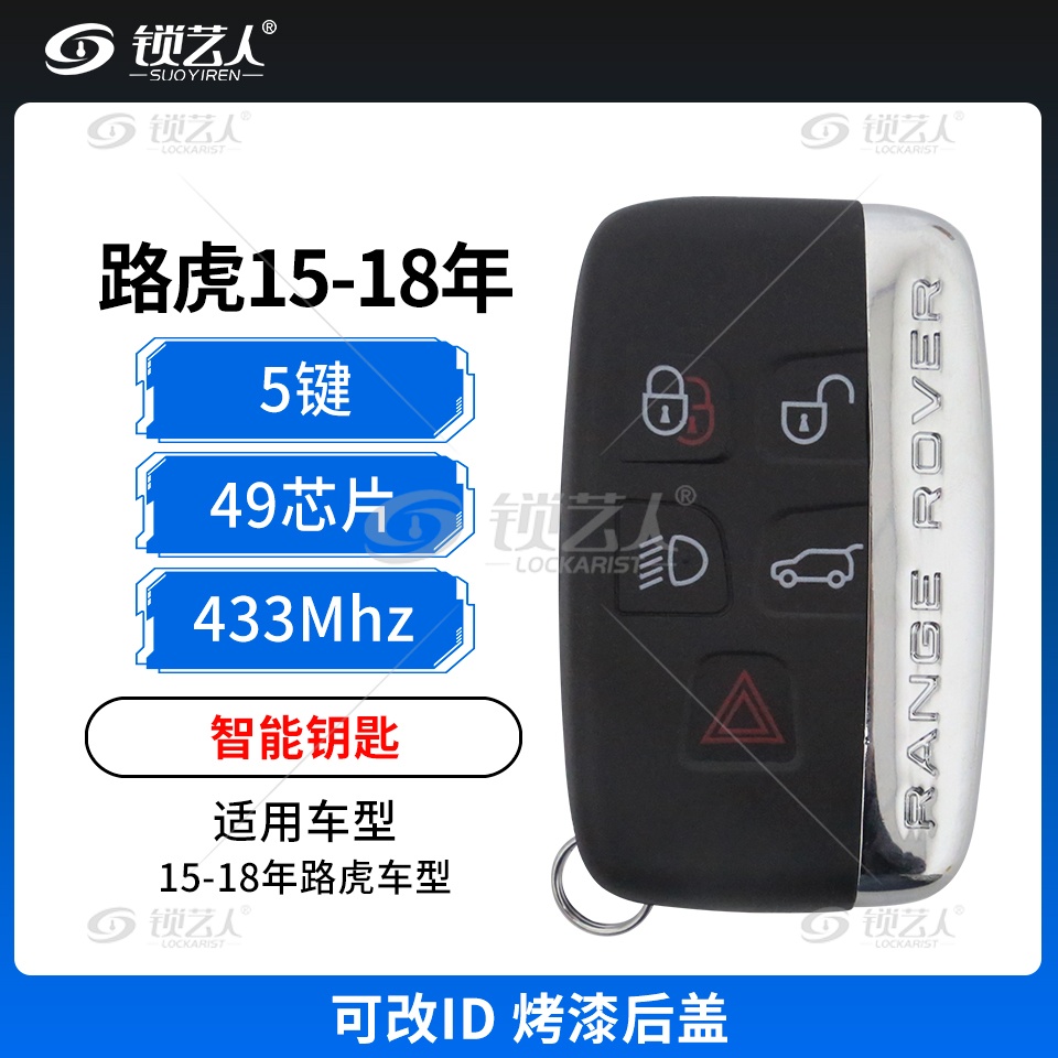 路虎15-18年智能钥匙-可改ID-5键-433MHz-49芯片-烤漆后盖 支持N51