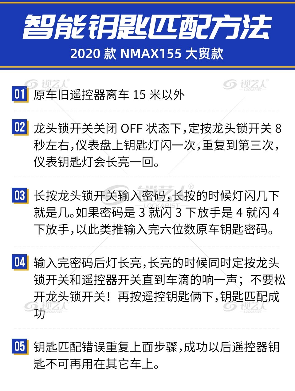 (温馨提示:钥匙一旦与车辆匹配后,无法再匹配其他车辆。故产品拆包即视为匹配,无法退换)本品适用于20-22款NMAX155(包含TCS版) YAMAHA原车感应钥匙智能无钥匙启动