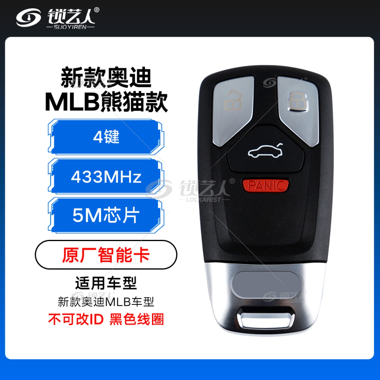 新款奥迪MLB熊猫款智能卡-4键-433MHz-5M芯片-原厂-黑色线圈