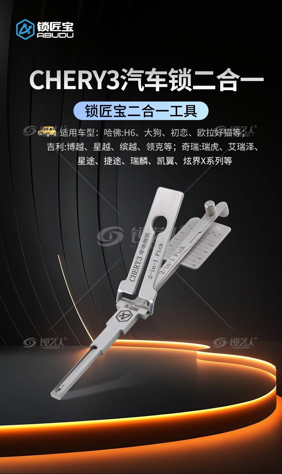 标签 ABUDU, 锁匠宝, CHERY3, CHERY3奇瑞, 侧铣二合一工具, 哈弗, 吉利, 奇瑞, 带缺口, 带切口