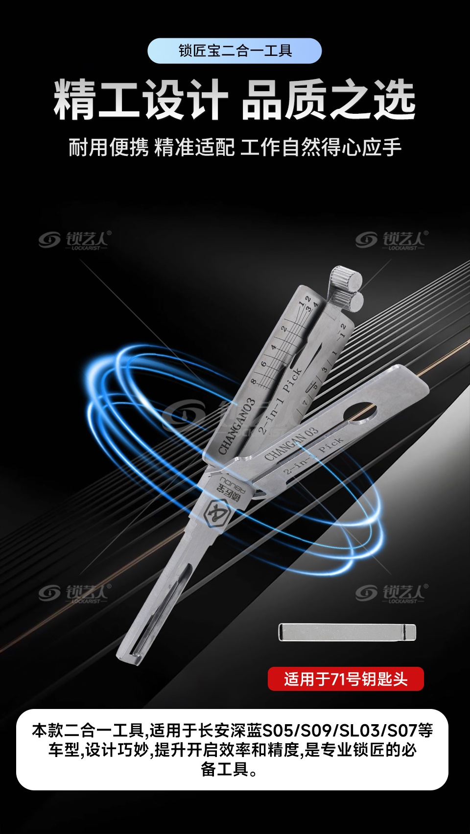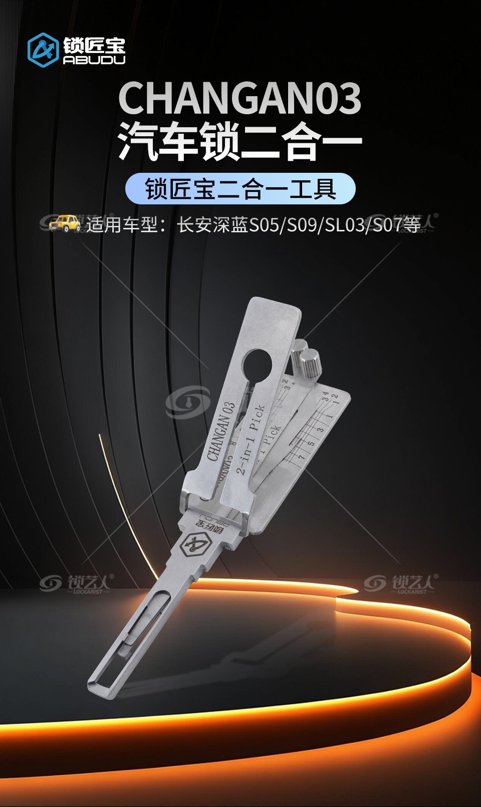 锁匠宝-CHANGAN03长安深蓝S05/S09/SL03/S07汽车锁二合一工具-内铣两轨迹