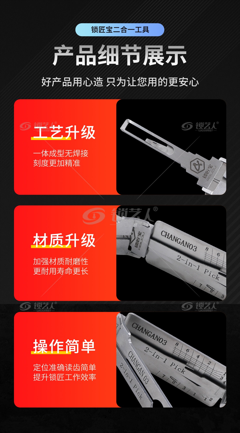 • 该工具适用于技术开启、教学演示及应急服务,是专业锁匠的必备工具。