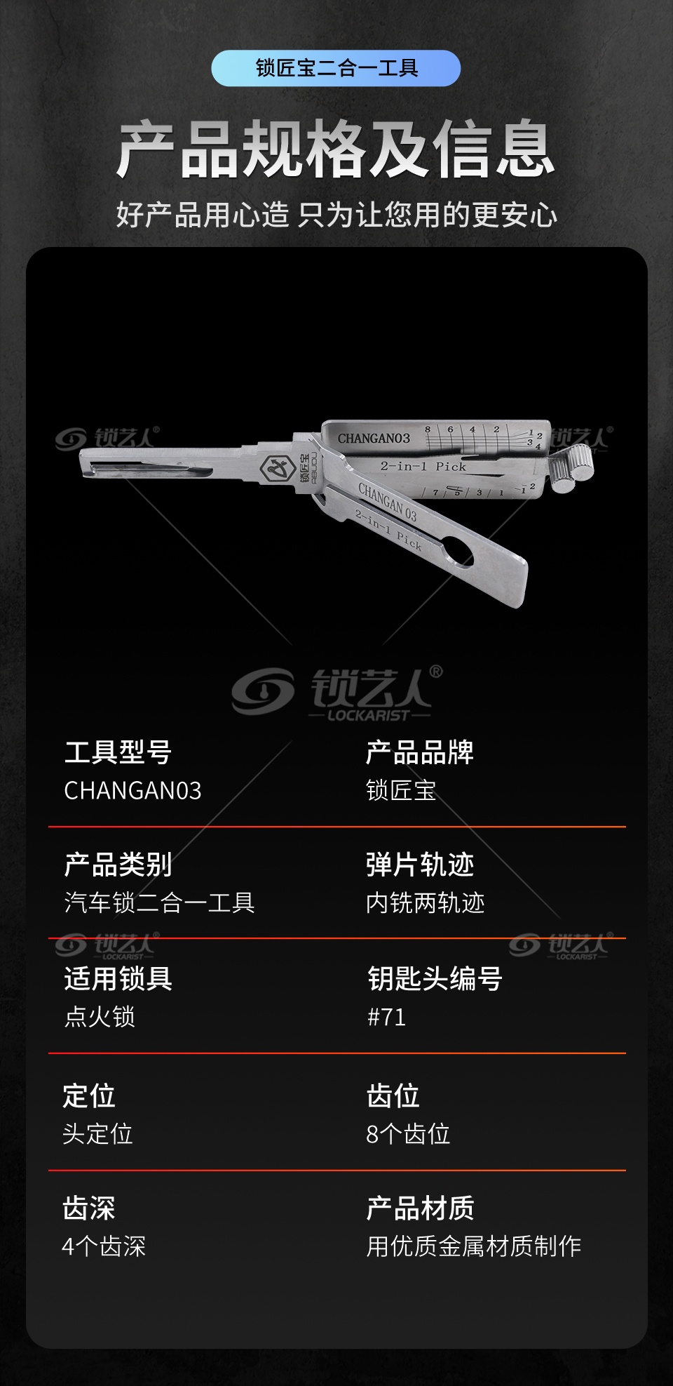 标签 锁匠宝, CHANGAN03, 汽车锁二合一, 内铣工具, 长安深蓝, S05, S09, SL03, S07, 优质不锈钢, 锁匠工具, 维修工具